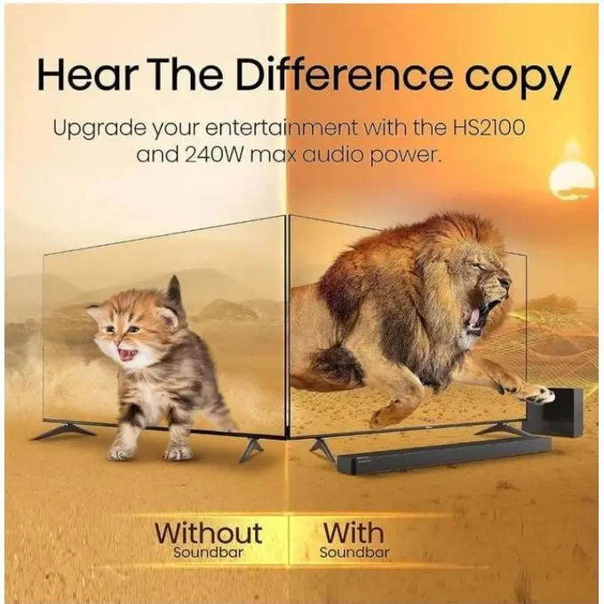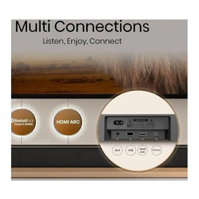Connectivity: HDMI ARC, Bluetooth 5.3, AUX and USB.