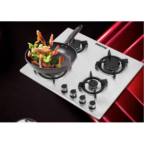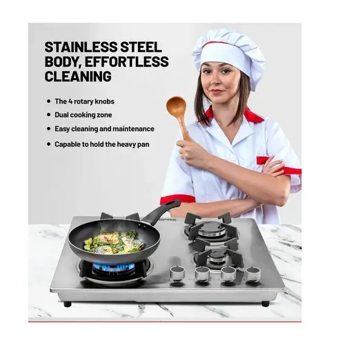 - The 4 rotary knobs with auto-ignition make gas adjustment flexibly and precisely, and the dual cooking zone has each knob to control the gas intensity of the zone is being operated.