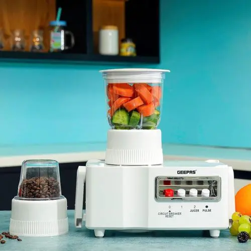 The 4-in-1 processor weighs 3.8 kg. The Geepas 4-in-1 food processor comes