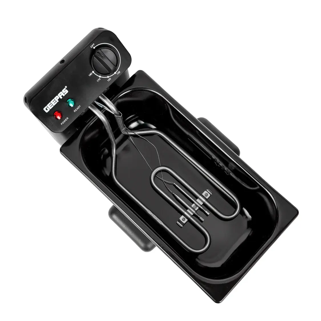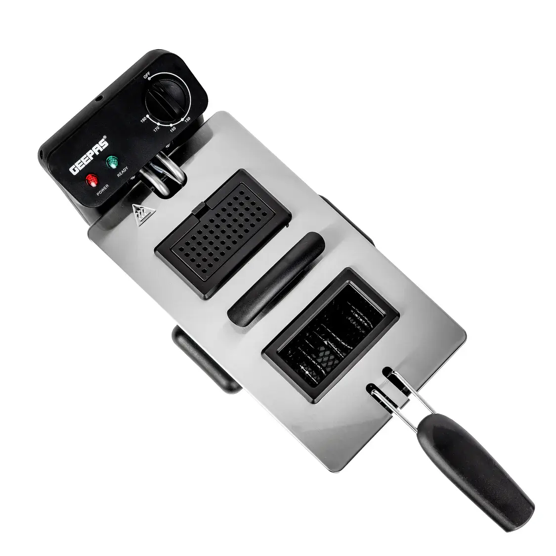Geepas Deep Fryer- GDF36015N/ 3.0 L Capacity, Brushed Stainless Steel Housing/ Fully Immersible Heating Element, Adjustable Temperature/ 2 Years Warranty, Black & Silver