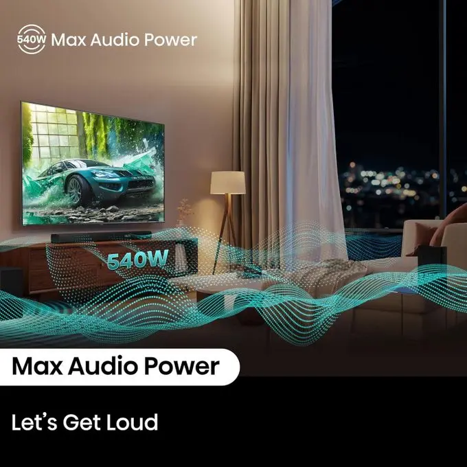 The system offers powerful audio performance, perfect for filling medium-to-large rooms with clear, rich sound.